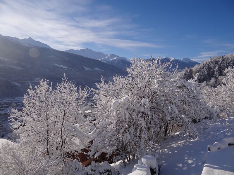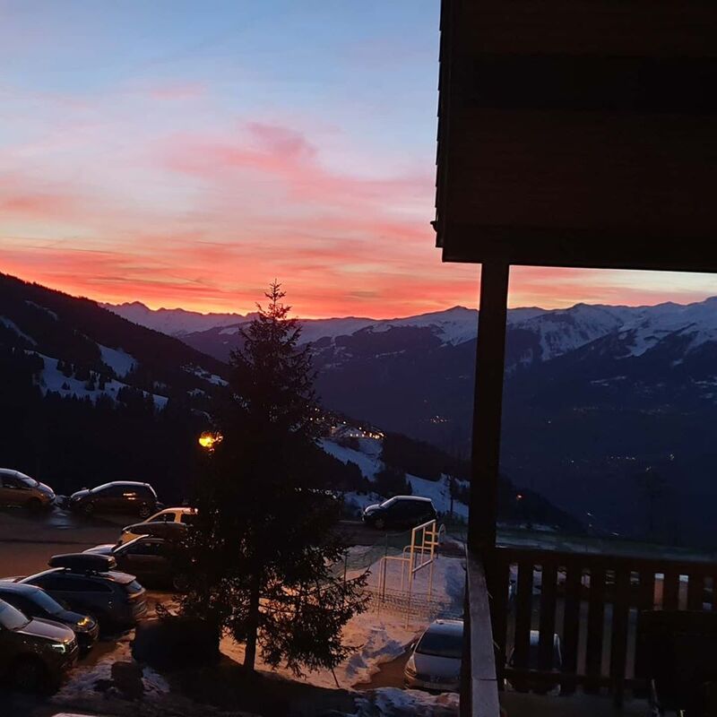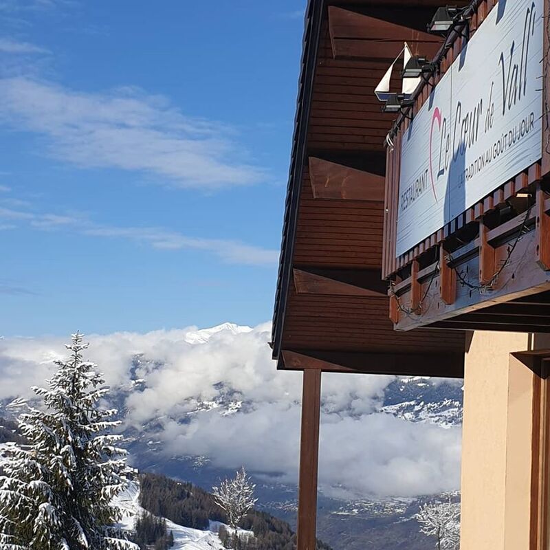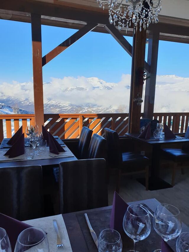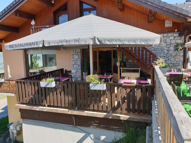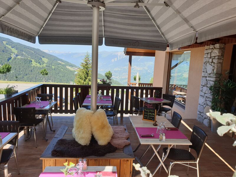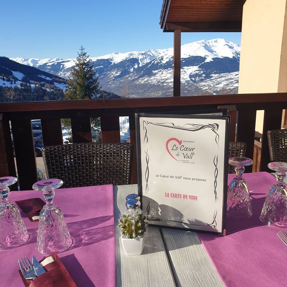 Terrasse chauffée avec vue panoramique sur la vallée.